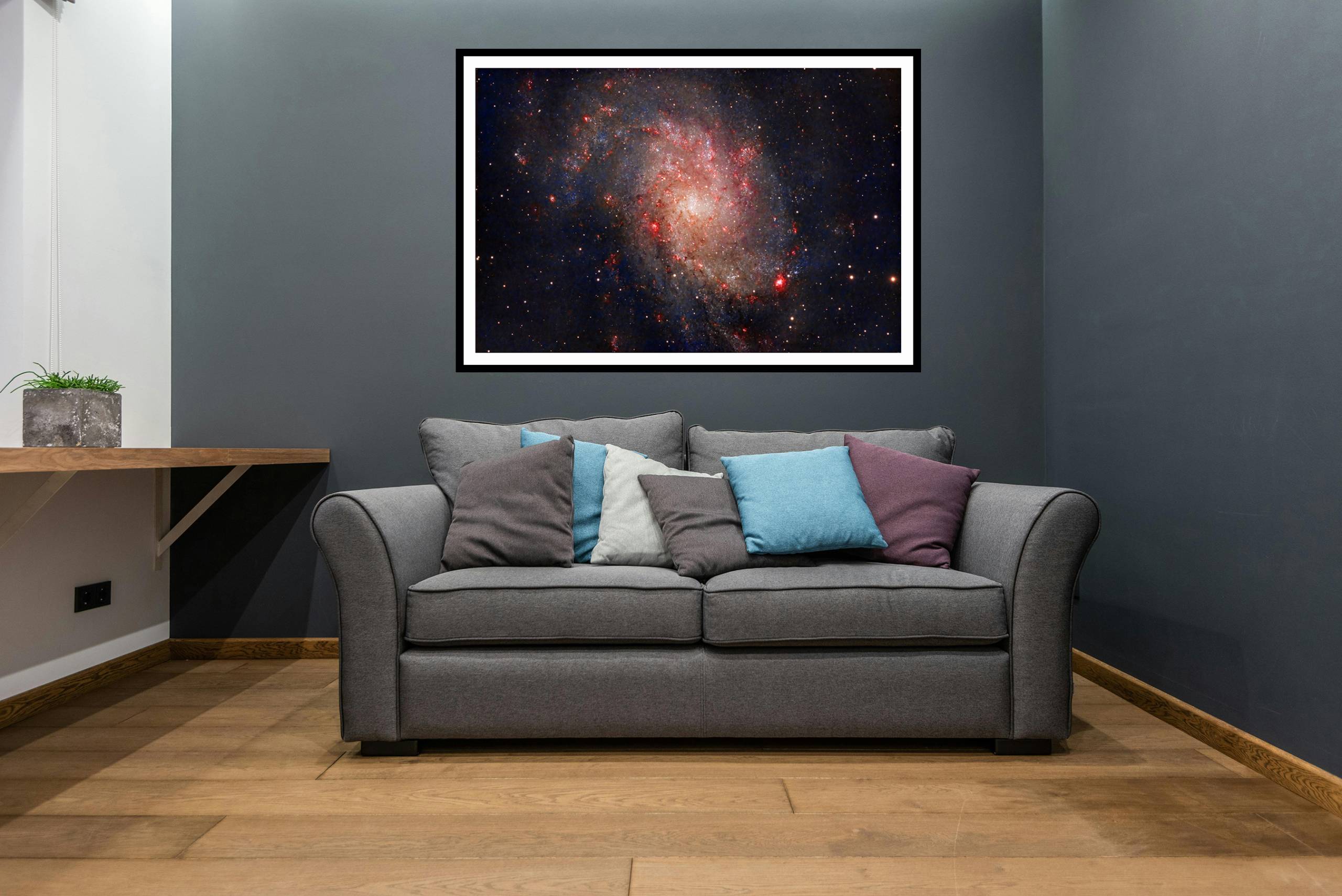 This high-quality print of the Triangulum Galaxy is more than just a stunning work of art—it’s a window into the cosmos, inviting viewers to explore the intricate beauty of a nearby spiral galaxy. Whether displayed in a home or office, this image serves as both a decorative masterpiece and an educational tool, inspiring curiosity about the wonders of deep space and the ongoing evolution of galaxies in our universe.